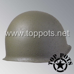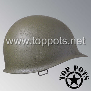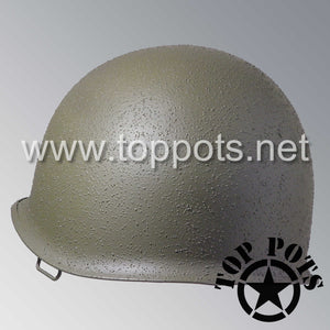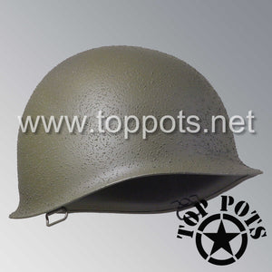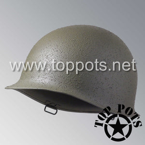 So, if you are looking for a US WWII swivel bale helmet, this is your helmet. This particular helmet represents the earlier model, which would have been used in combat operations such as the D Day, Operation Market Garden, Battle of the Bulge and Okinawa campaigns. This is simply the best WWII M1 helmet for re-enactors, air-soft clubs and collectors made exclusively by Top Pots.