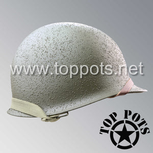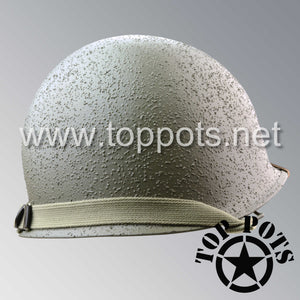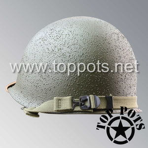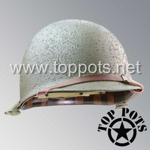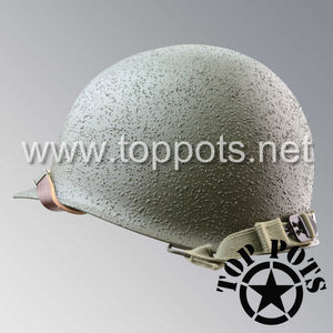 So, if you are looking for a US WWII swivel bale helmet with the most authentic Type II Mil-Spec 530 11 row weave chain-pattern and Herring Bone Twill suspension webbing, this is your helmet. This particular helmet represents the standard model, which would have been used in combat operations such as D Day, Operation Market Garden and the Battle of Okinawa. This is simply the best WWII M1 helmet for re-enactors, air-soft clubs and collectors made exclusively by Top Pots.