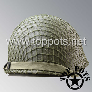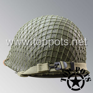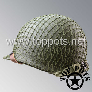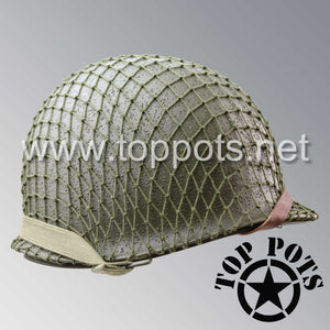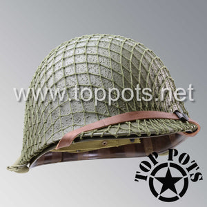 So, if you are looking for a US WWII swivel bale helmet with the most authentic Type II Mil-Spec 530 11 row weave chain-pattern and Herring Bone Twill suspension webbing, this is your helmet. This particular helmet represents the standard model, which would have been used in combat operations such as D Day, Operation Market Garden and the Battle of Okinawa. This is simply the best WWII M1 helmet for re-enactors, air-soft clubs and collectors made exclusively by Top Pots.
