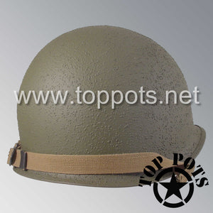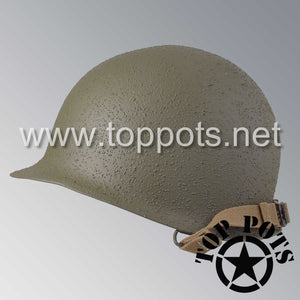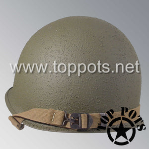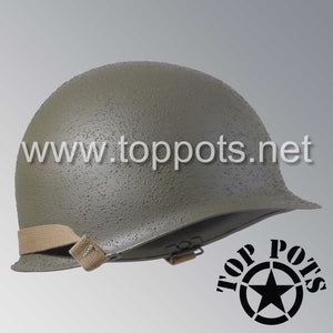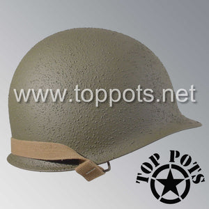 So, if you are looking for a US WWII helmet with the most authentic Type II Mil-Spec 530 11 row weave chain-pattern chinstrap webbing, this is your helmet. This particular helmet represents the standard model, which would have been used in combat operations such as D Day, Operation Market Garden and Okinawa. This is simply the best WWII M1 helmet for re-enactors, air-soft clubs and collectors made exclusively by Top Pots.