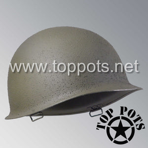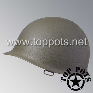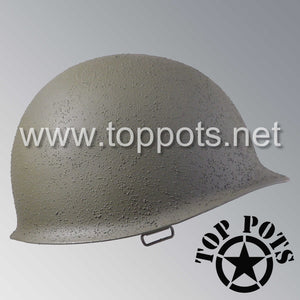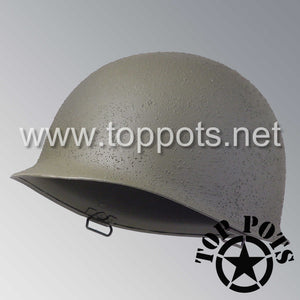 So, if you are looking for a US WWII swivel bale helmet, this is your helmet. This particular helmet represents the earlier model, which would have been used in combat operations such as the D Day, Operation Market Garden, Battle of the Bulge and Okinawa campaigns. This is simply the best WWII M1 helmet for re-enactors, air-soft clubs and collectors made exclusively by Top Pots.