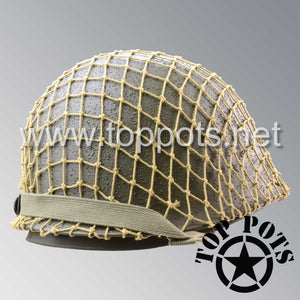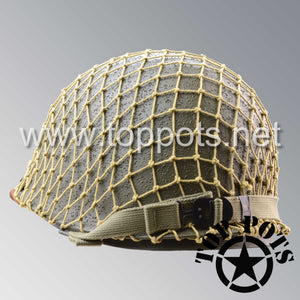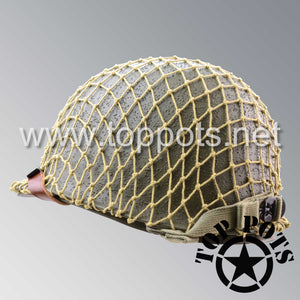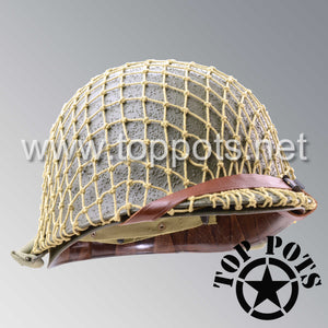 WWII US Army Restored Original M1 Infantry Helmet Swivel Bale Schlueter Shell and Liner with Khaki Net