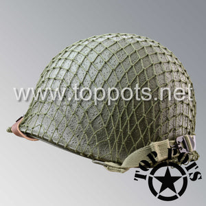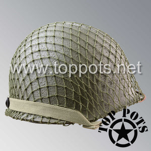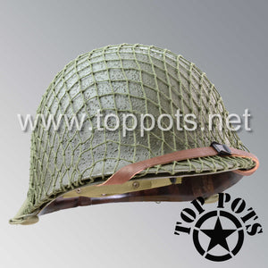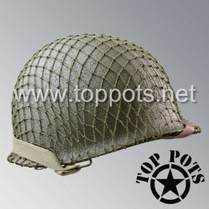 WWII US Army Restored Original M1 Infantry Helmet Swivel Bale Schlueter Shell and Liner with Olive Drab Net