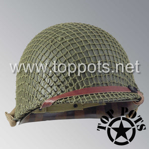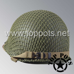 WWII US Army Restored Original M1 Infantry Helmet Swivel Bale Shell and Liner with OD 3 Net
