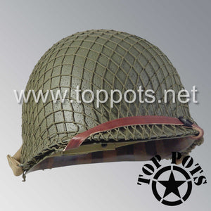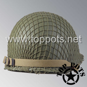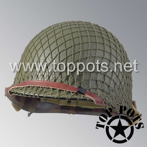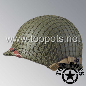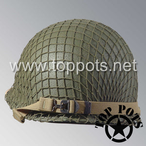 WWII US Army Restored Original M1 Infantry Helmet Swivel Bale Shell and Liner with OD 7 Net