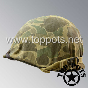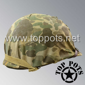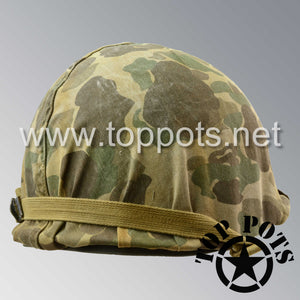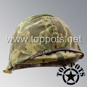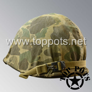 WWII USMC Aged Original M1 Infantry Helmet Fix Bale Shell and Liner with Marine Corps Camouflage Cover