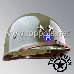 WWII US Army Restored Original M1 Infantry Helmet Liner with Patton 3rd Army Major General Rank