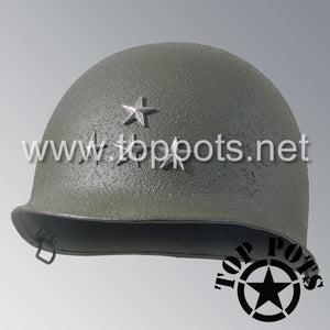 WWII US Army Restored Original M1 Infantry Helmet Swivel Bale Shell with 3rd Army General Patton Rank