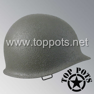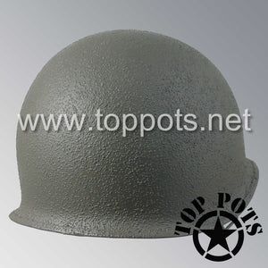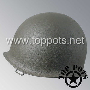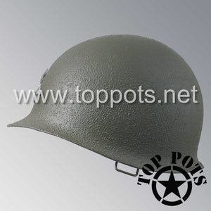 So, if you are looking for a US WWII swivel bale helmet, this is your helmet. This particular helmet represents the earlier model, which would have been used in combat operations such as the D Day, Operation Market Garden, Battle of the Bulge and Okinawa campaigns. This is simply the best WWII M1 helmet for re-enactors, air-soft clubs and collectors made exclusively by Top Pots.