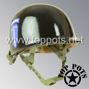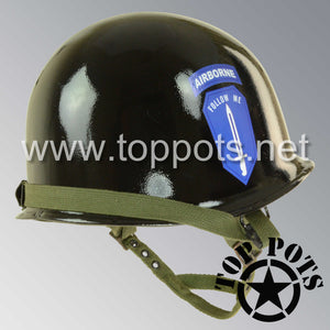 Vietnam War US Army Restored Original P55 M1C Paratrooper Airborne Helmet Swivel Bale Shell and Liner with Ranger Infantry School Emblem