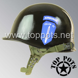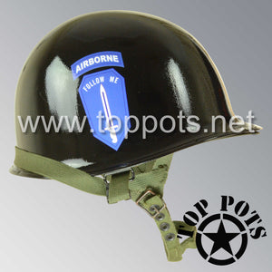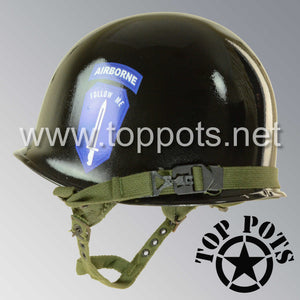 • US M1 P55 helmet liner (with frontal insignia hole and converted to airborne specifications)