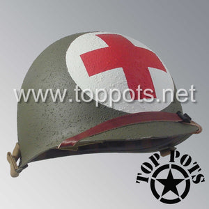 WWII US Army Restored Original M1 Infantry Helmet Swivel Bale Shell and Liner with 2nd Ranger Medic Emblem