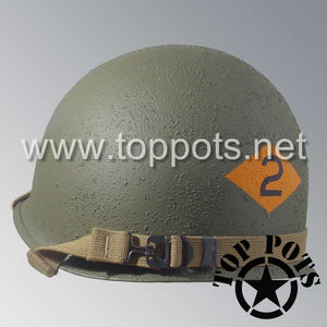 So, if you are looking for a US WWII swivel bale helmet with the most authentic Type II Mil-Spec 530 11 row weave chain-pattern and Herring Bone Twill suspension webbing, this is your helmet. This particular helmet represents the standard model, which would have been used in combat operations such as D Day, Operation Market Garden and the Battle of Okinawa. This is simply the best WWII M1 helmet for re-enactors, air-soft clubs and collectors made exclusively by Top Pots.