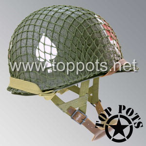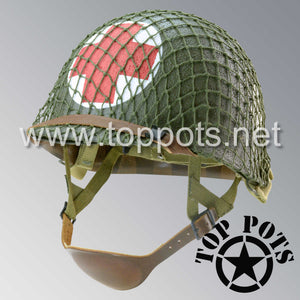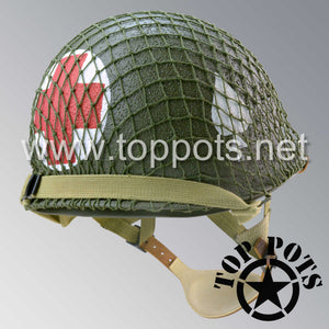 WWII US Army Restored Original M1C Paratrooper Airborne Helmet Swivel Bale Shell and Liner with 506th 2nd Battalion Medic Emblem and Net
