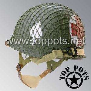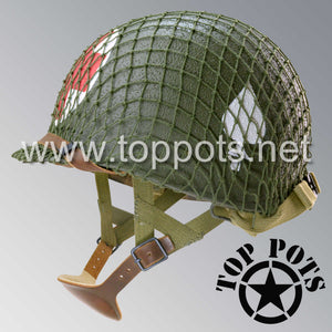 So, if you are looking for a US WWII M1C swivel bale jump helmet with the most authentic Type II Mil-Spec 530 11 row weave chain-pattern, A yoke and Herring Bone Twill suspension webbing, this is your helmet. This particular helmet represents the standard model, which would have been used in combat operations such as the D Day and Market Garden. This is simply the best WWII M1C paratrooper helmet for re-enactors, air-soft clubs and collectors made exclusively by Top Pots.