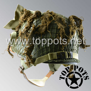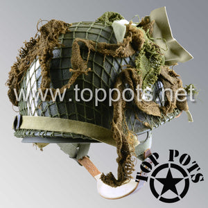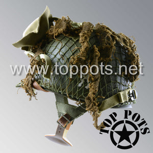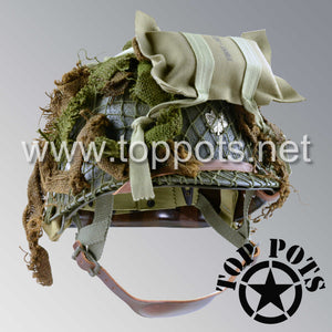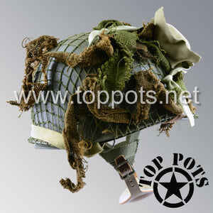 So, if you are looking for a US WWII D ring helmet with the most authentic Type II Mil-Spec 530 11 row weave chain-pattern, A yoke and Herring Bone Twill suspension webbing, this is your helmet. This particular helmet represents the earlier model, which would have been used in combat operations such as the D Day jump into Normandy. This is simply the best WWII M2 helmet for re-enactors, air-soft clubs and collectors made exclusively by Top Pots.