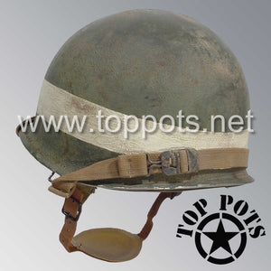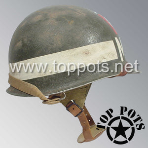WWII US Army Aged Original M1C Paratrooper Airborne Helmet Swivel Bale Shell and Liner with 82nd Airborne Military Police Batallion MP Emblem