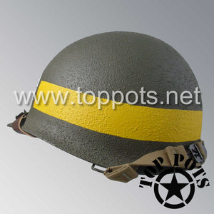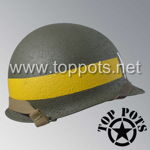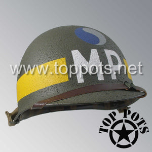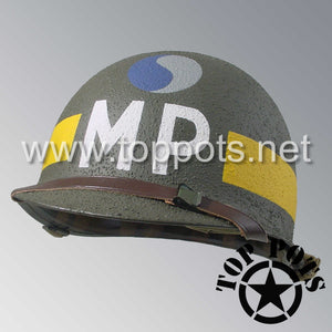 WWII US Army Restored Original M1 Infantry Helmet Swivel Bale Shell and Liner with 29th Infantry Division Military Police Divisional MP Emblem