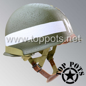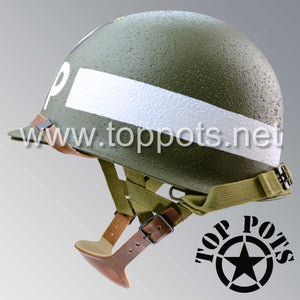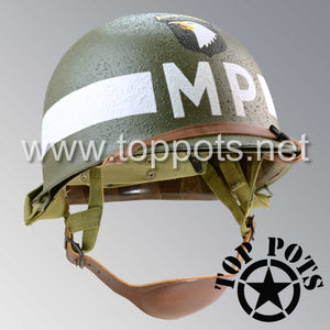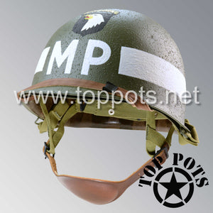 WWII US Army Restored Original M1C Paratrooper Airborne Helmet Swivel Bale Shell and Liner with 101st Airborne MP Military Police Emblem