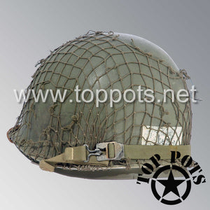 So, if you are looking for a US WWII swivel bale helmet with the most authentic Type II Mil-Spec 530 11 row weave chain-pattern and Herring Bone Twill suspension webbing, this is your helmet. This particular helmet represents the standard model, which would have been used in combat operations such as D Day, Operation Market Garden and the Battle of Okinawa. This is simply the best WWII M1 helmet for re-enactors, air-soft clubs and collectors made exclusively by Top Pots.