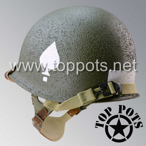WWII US Army Restored Original M1C Paratrooper Airborne Helmet Swivel Bale Shell and Liner with 506th 2nd Battalion PIR NCO Emblem