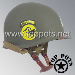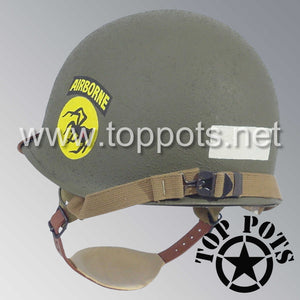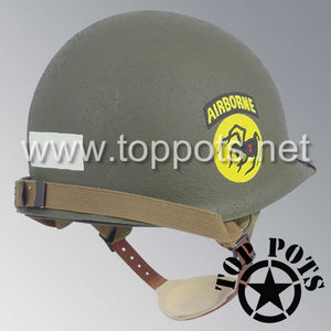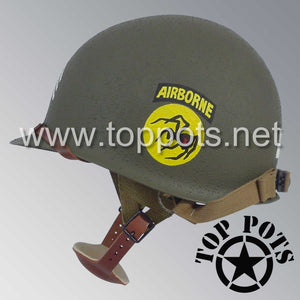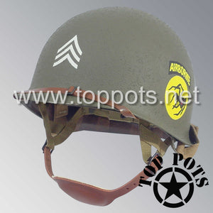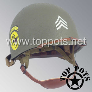 WWII US Army Restored Original M2 Paratrooper Airborne Helmet D Bale Shell and Liner with 135th Airborne Decoy Division NCO Emblem