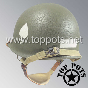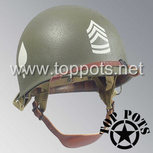 WWII US Army Restored Original M2 Paratrooper Airborne Helmet D Bale Shell and Liner with 506th PIR 2nd Battalion Sergeant 1st Class NCO Emblem