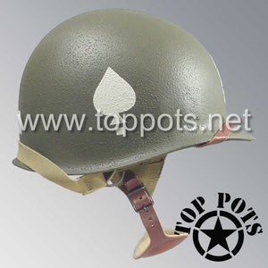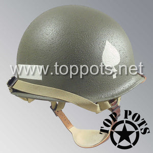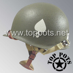 So, if you are looking for a US WWII D ring helmet with the most authentic Type II Mil-Spec 530 11 row weave chain-pattern, A yoke and Herring Bone Twill suspension webbing, this is your helmet. This particular helmet represents the earlier model, which would have been used in combat operations such as the D Day jump into Normandy. This is simply the best WWII M2 helmet for re-enactors, air-soft clubs and collectors made exclusively by Top Pots.