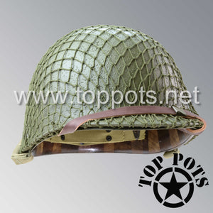 WWII US Army Restored Original M1 Infantry Helmet Fix Bale Shell and Liner with Officer Leadership Stripe and Net