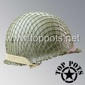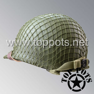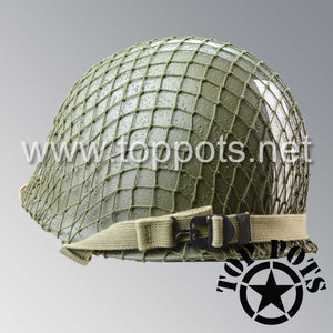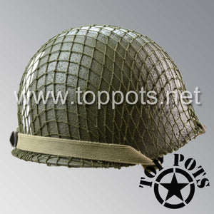 So, if you are looking for a US WWII fix bale helmet with the most authentic Type II Mil-Spec 530 11 row weave chain-pattern and Herring Bone Twill suspension webbing, this is your helmet. This particular helmet represents the earlier model, which would have been used in combat operations such as in New Guinea, North Africa, Italy and D Day. This is simply the best WWII M1 helmet for re-enactors, air-soft clubs and collectors made exclusively by Top Pots.