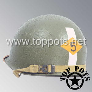 WWII US Army Restored Original M1 Infantry Helmet Swivel Bale Shell and Liner with 5th Ranger Officer Emblem