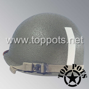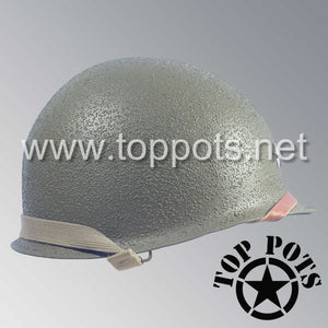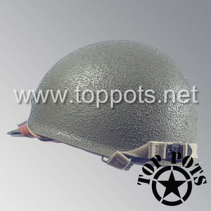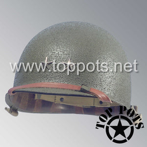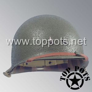 So, if you are looking for a US WWII swivel bale helmet with the most authentic Type II Mil-Spec 530 11 row weave chain-pattern and Herring Bone Twill suspension webbing, this is your helmet. This particular helmet represents the standard model, which would have been used in combat operations such as D Day, Operation Market Garden and the Battle of Okinawa. This is simply the best WWII M1 helmet for re-enactors, air-soft clubs and collectors made exclusively by Top Pots.