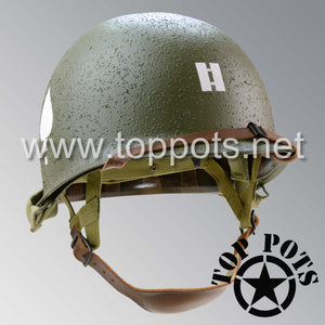 WWII US Army Restored Original M1C Paratrooper Airborne Helmet Swivel Bale Shell and Liner with 506th 2nd Battalion PIR Officer Captain Emblem