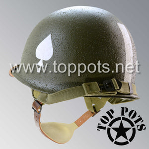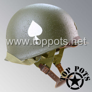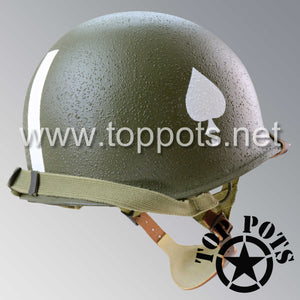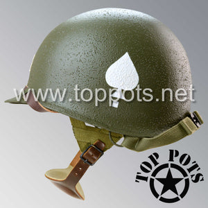 So, if you are looking for a US WWII D ring helmet with the most authentic Type II Mil-Spec 530 11 row weave chain-pattern, A yoke and Herring Bone Twill suspension webbing, this is your helmet. This particular helmet represents the earlier model, which would have been used in combat operations such as the D Day jump into Normandy. This is simply the best WWII M2 helmet for re-enactors, air-soft clubs and collectors made exclusively by Top Pots.