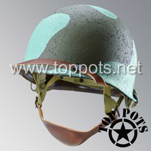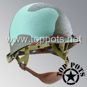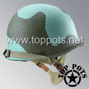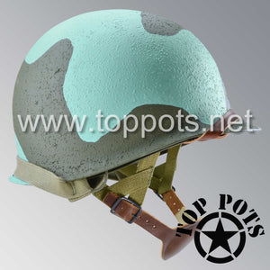 WWII USMC Marine Corps M2 Para Marine Paratrooper Airborne Helmet D Bale Shell and Liner with Pacific Water Camouflage Emblem - Sea Foam Blue