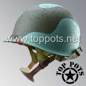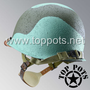 So, if you are looking for a US WWII D ring helmet with the most authentic Type II Mil-Spec 530 11 row weave chain-pattern, A yoke and Herring Bone Twill suspension webbing, this is your helmet. This particular helmet represents the earlier model, which would have been used in combat operations such as the D Day jump into Normandy. This is simply the best WWII M2 helmet for re-enactors, air-soft clubs and collectors made exclusively by Top Pots.