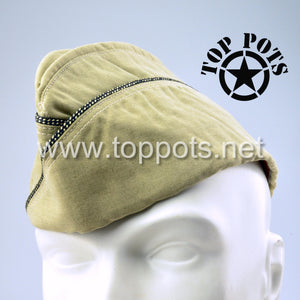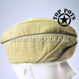 WWII US Army Reproduction Khaki Cotton Officer Summer Uniform Garrison Overseas Cap – Cap, Garrison, Khaki