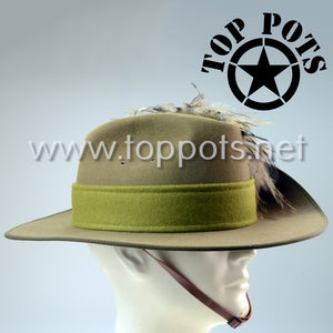 This is a reproduction of the WWI Australian Army Light Horse Slouch Hat with Sun Badge and Plume. It comes complete with wool headband, leather chinstrap, emu plume and a sun badge with military subdued finish.