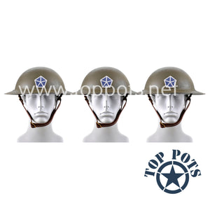 WWI US Army Reproduction American Doughboy M1917 Enlisted Brodie Helmet and Liner with V Corps Emblem – Textured Finish (THREE HELMET SET)
