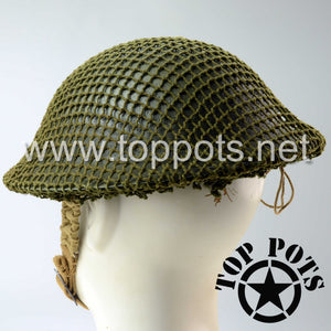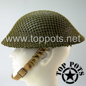WWII British Army Reproduction MKII MK2 Enlisted Brodie Helmet with Original Helmet Net – Field Textured Finish