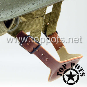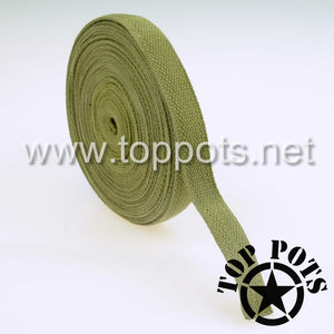 Reproduction WWII US Army M1C paratrooper helmet liner cotton olive drab 3 Inland style A strap webbing material. It is an excellent replication and adorned our airborne helmets for the past two decades of business and is still being used on our all reproduction jump helmets. It is the standard diamond pattern 18 mm wide A yoke webbing and is superior to the reproduction material being used by other vendors today, as it is military grade surplus webbing.