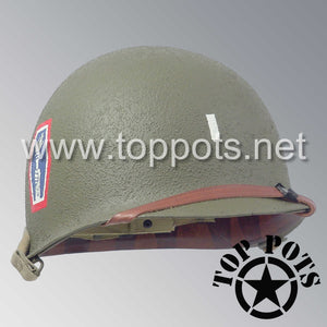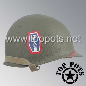 WWII US Army Restored Original M1 Infantry Helmet Swivel Bale Shell and Liner with 442nd Infantry Regiment Officer Emblem