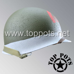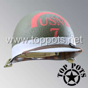 WWII US Navy Restored Original M1 Infantry Helmet Swivel Bale Shell and Liner with 7th Naval Beach Battalion USN Emblem