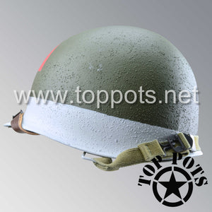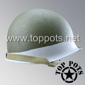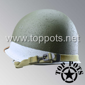 So, if you are looking for a US WWII swivel bale helmet with the most authentic Type II Mil-Spec 530 11 row weave chain-pattern and Herring Bone Twill suspension webbing, this is your helmet. This particular helmet represents the standard model, which would have been used in combat operations such as D Day, Operation Market Garden and the Battle of Okinawa. This is simply the best WWII M1 helmet for re-enactors, air-soft clubs and collectors made exclusively by Top Pots.