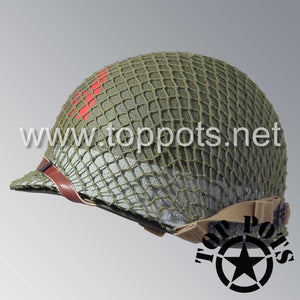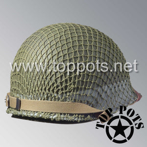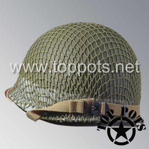 So, if you are looking for a US WWII swivel bale helmet with the most authentic Type II Mil-Spec 530 11 row weave chain-pattern and Herring Bone Twill suspension webbing, this is your helmet. This particular helmet represents the standard model, which would have been used in combat operations such as D Day, Operation Market Garden and the Battle of Okinawa. This is simply the best WWII M1 helmet for re-enactors, air-soft clubs and collectors made exclusively by Top Pots.
