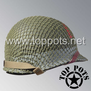 WWII US Navy Restored Original M1 Infantry Helmet Swivel Bale Shell and Liner with 7th Naval Beach Battalion USN Emblem with OD 3 Net