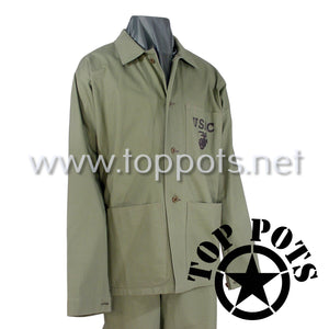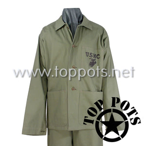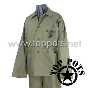 WWII USMC Reproduction M1941 P41 Cotton HBT Uniform Herring Bone Twill Olive Drab Field Utility Fatigue Jacket